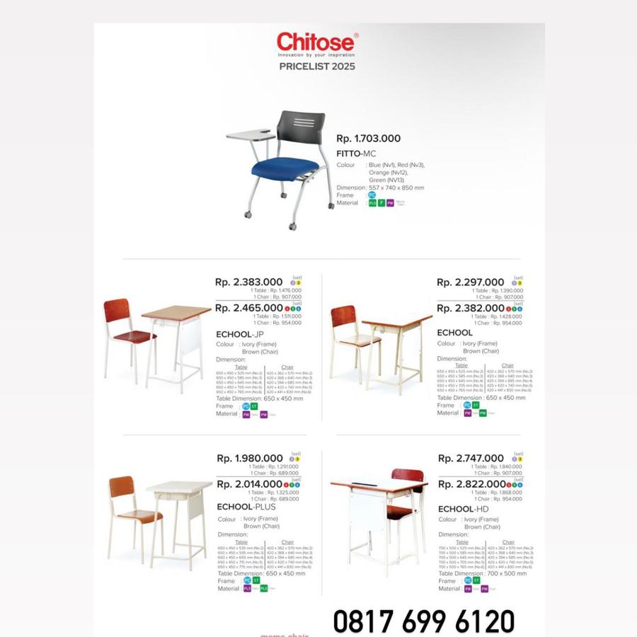 Kursi Kantor Chitose FITTO-MC ECHOOL-JP ECHOOL ECHOOL-PLUS ECHOOL-HD