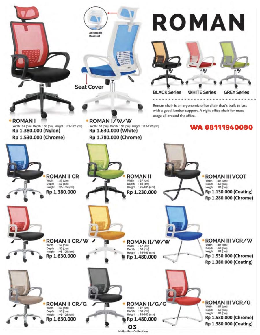 Kursi Kantor Ichiko Eco ROMAN I ROMAN I/W/W ROMAN II CR ROMAN II ROMAN III VCOT ROMAN II CR/W ROMAN II/W/W ROMAN III VCR/W ROMAN II CR/G ROMAN II/G/G ROMAN III VCR/G