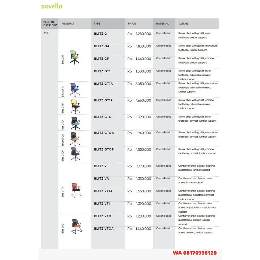 Kursi Kantor Savello BLITZ G GA GP GT1 GT1A GT1P GTO GTOA GTOP V VA VT1A VTI VTO VTOA