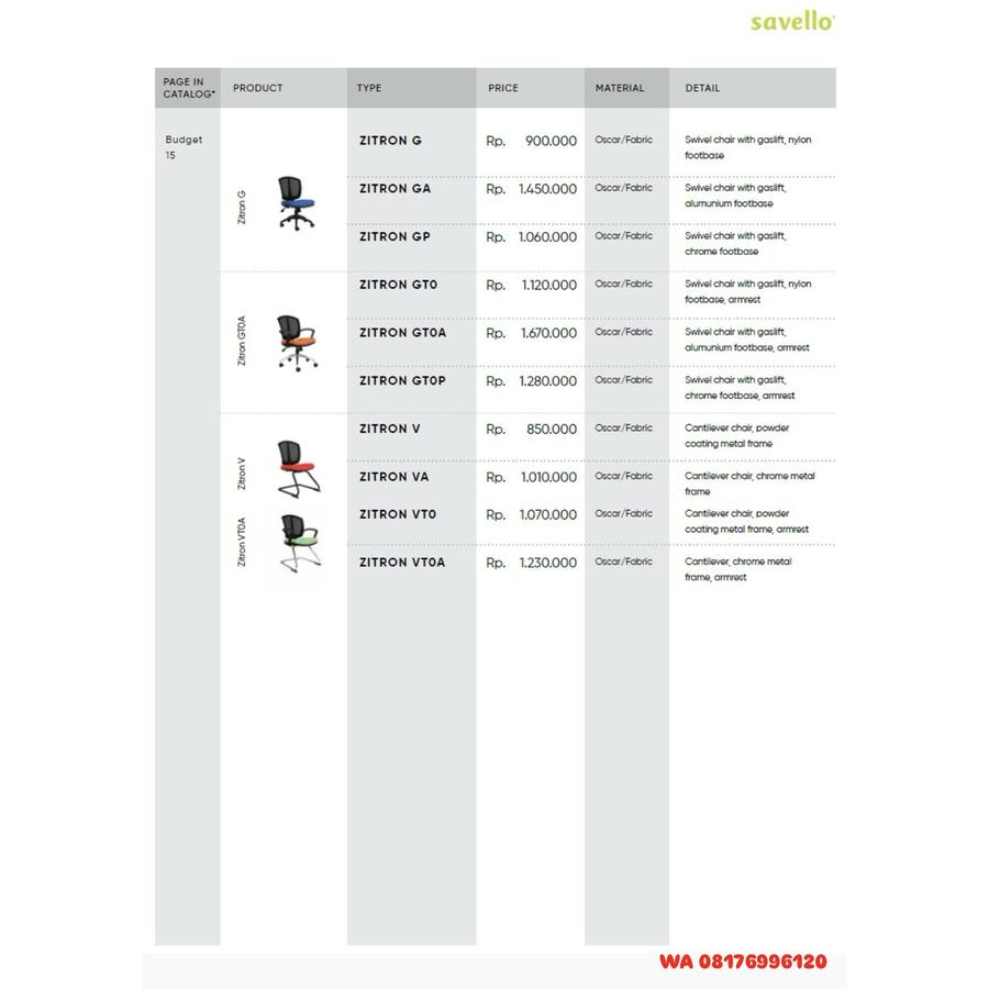 Kursi Kantor Savello ZITRON G GA GP GT0 GT0A GT0P V VA VT0 VT0A