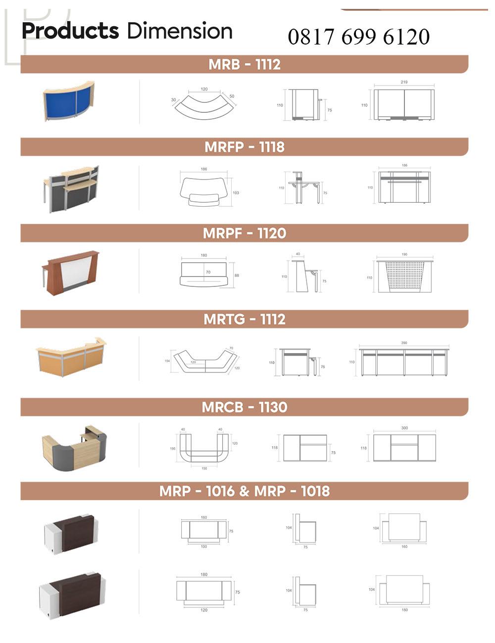 Meja Resepsionis Modera Half Square Reception Table MRCB 1130
